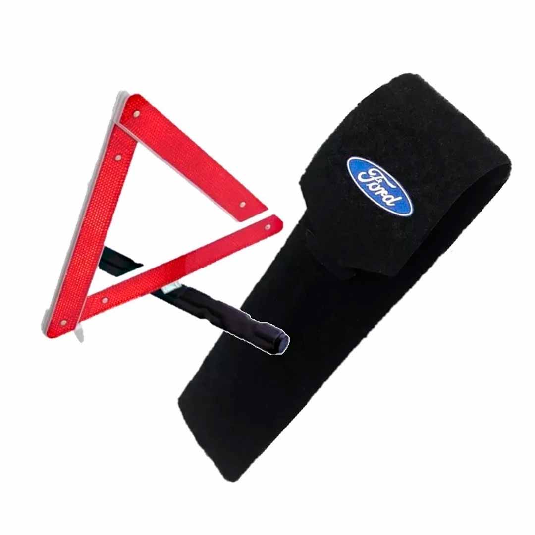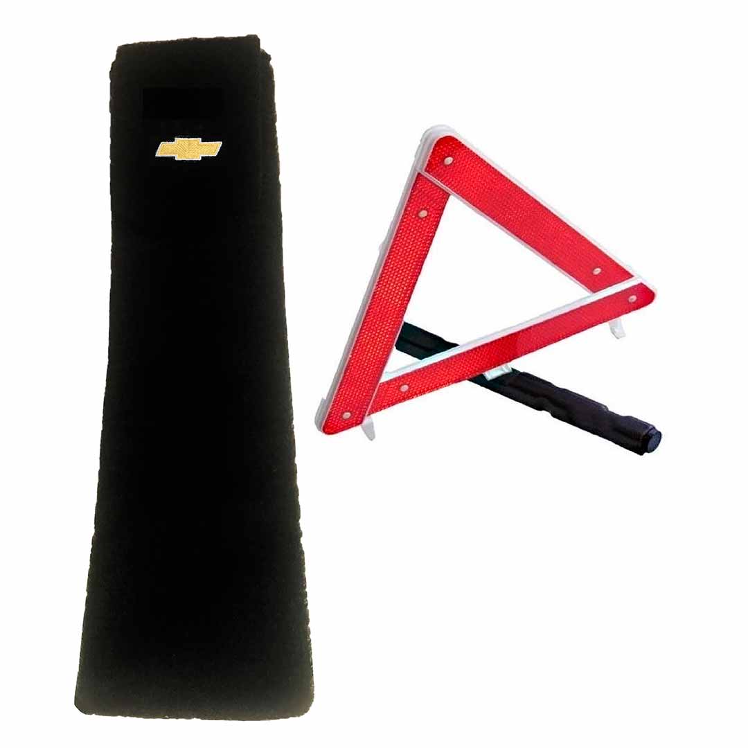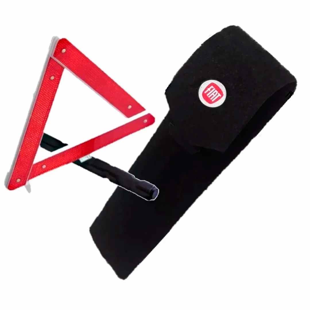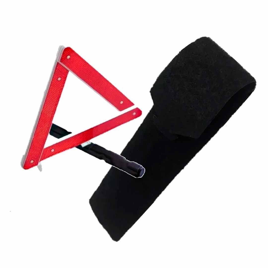 Porta-triangulo acarpetado preto com logomarca do veículo.