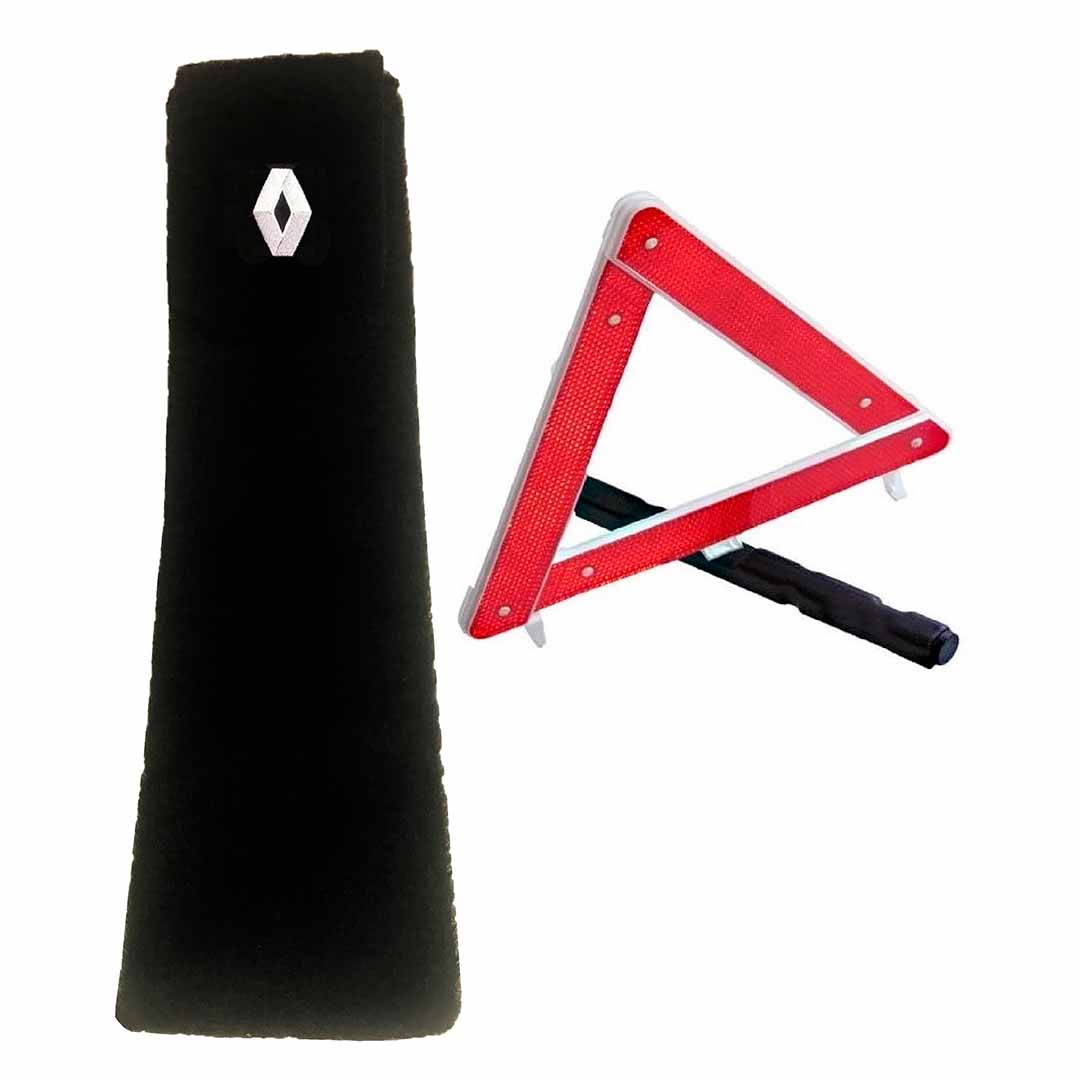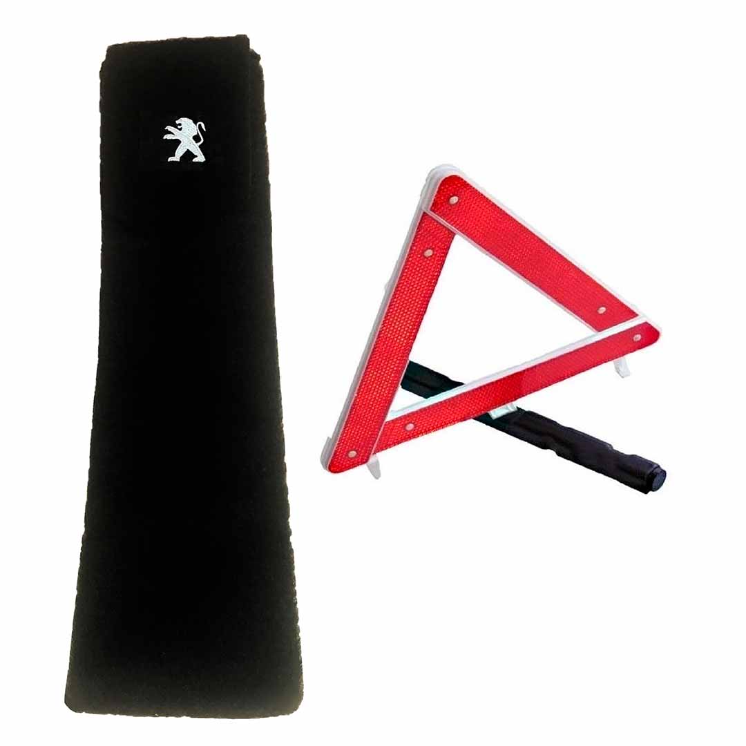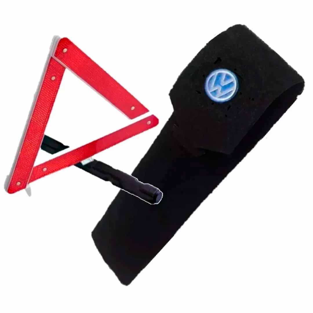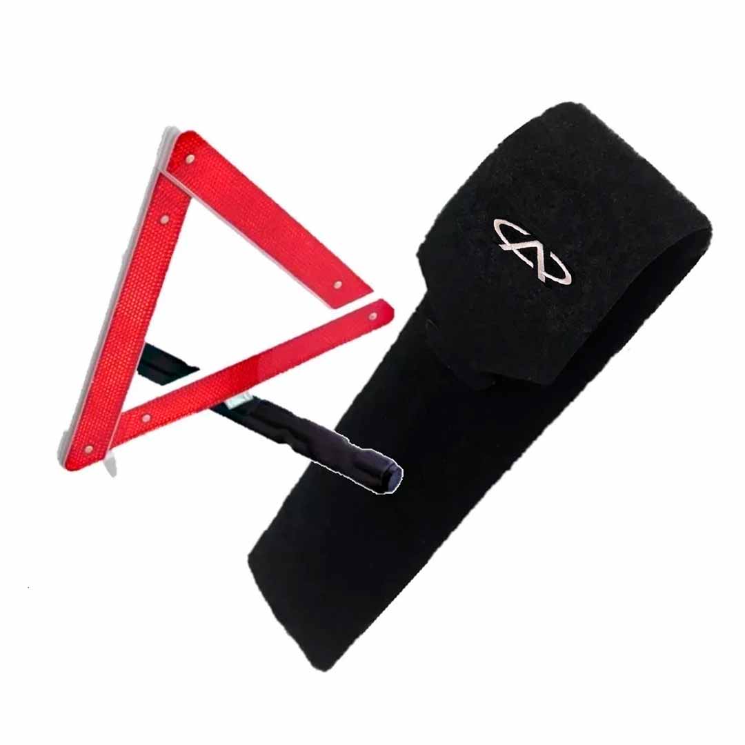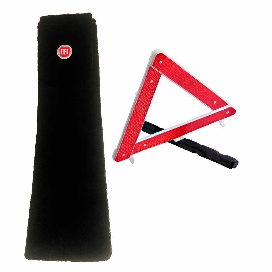 Porta-triangulo acarpetado preto com logomarca do veículo.