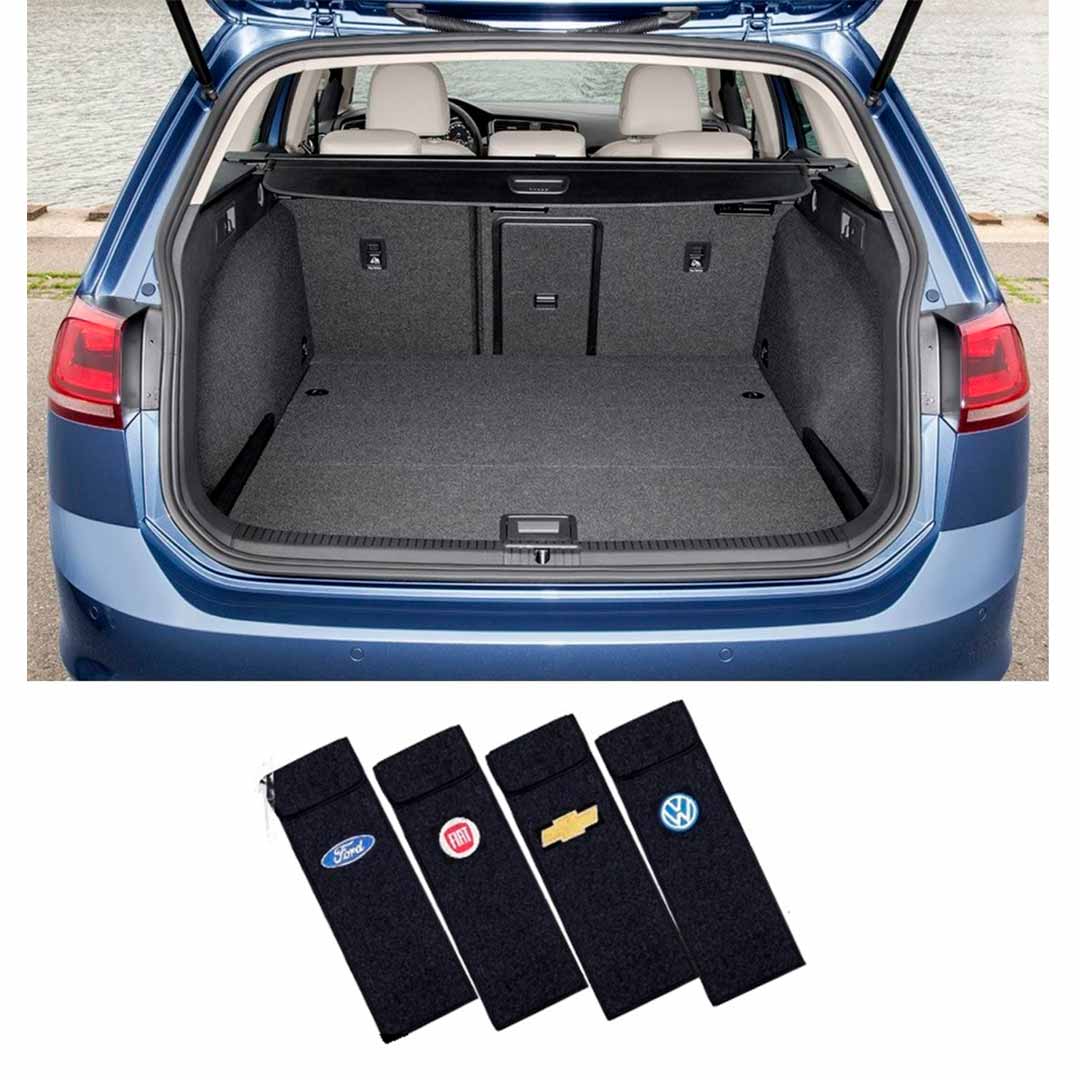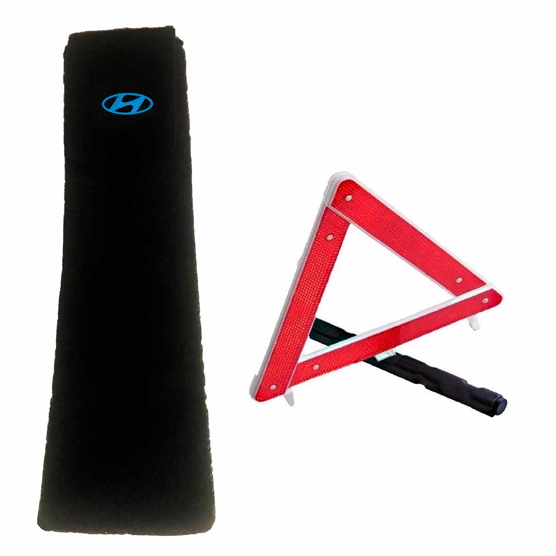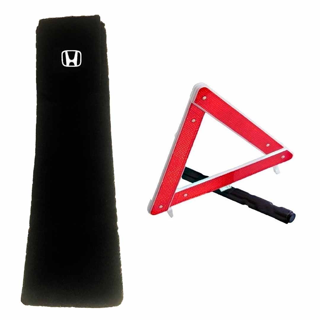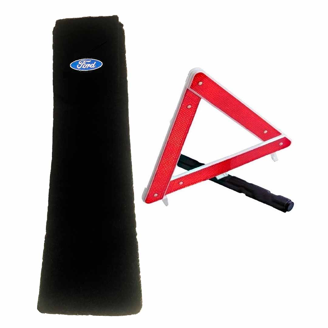 Porta-triangulo acarpetado preto com logomarca do veículo.